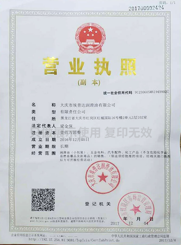 我公司是从事润滑油生产及销售的**公司。